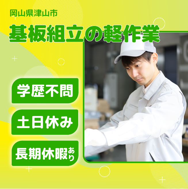 電子基板の組立作業を担当する日勤の軽作業です。