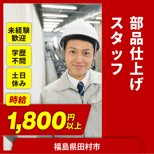 給与詳細 時給例 1,800円 月収例 288,000円 勤務地 福島県田村市 仕事内容 【業務内容】