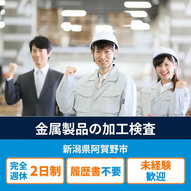 給与詳細 月収例 232,050円 時給例 1,190円 勤務地 新潟県阿賀野市 仕事内容 【業務内容】金属加工製品の製造・検査に関する業務