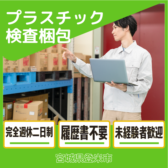 給与詳細 月収例 222,300円 時給例 1,140円 勤務地 宮城県登米市 仕事内容 プラスチック製品の成形品の検査、梱包業務に携わっていただきます。