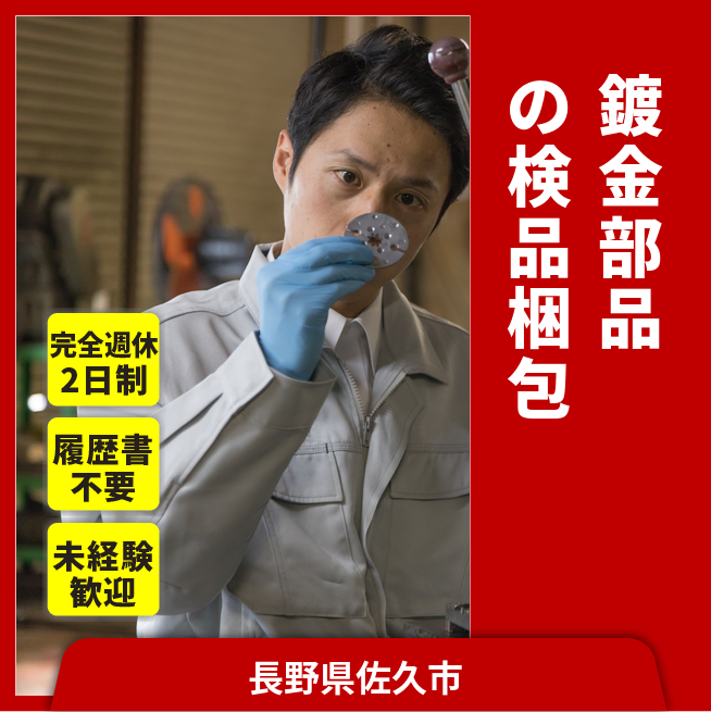 給与詳細 月収例 176,000円 時給例 1,140円 勤務地 長野県佐久市 仕事内容 鍍金部品の検品・梱包