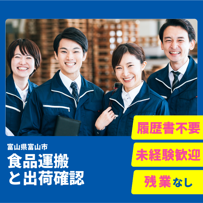 給与詳細 月収例 197,120円 時給例 1,150円 勤務地 富山県富山市 仕事内容 ・盛付室内から検品室への製品の運搬