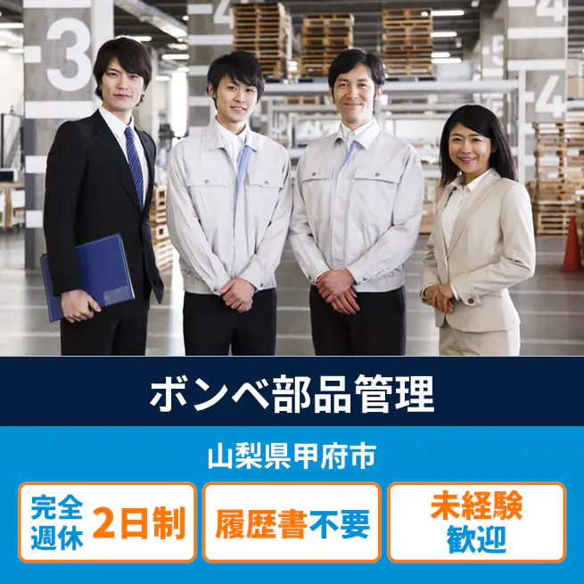 給与詳細 月収例 230,100円 時給例 1,180円 勤務地 山梨県甲府市 仕事内容 部品の受入・検収・入庫・出荷・ライン供給・ピッキング・梱包・購入部品の発注業務および付随する業務