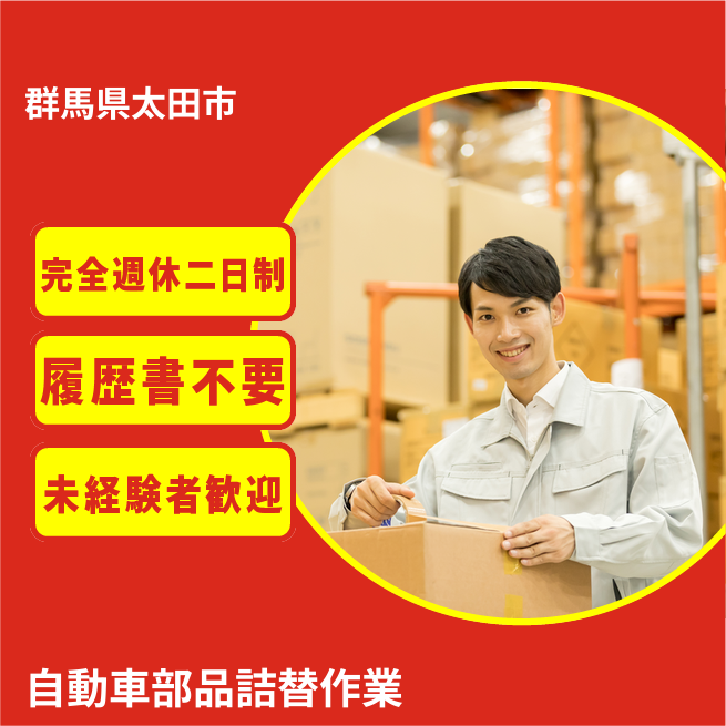 給与詳細 月収例 247,650円 日給例 10,160円 勤務地 群馬県太田市 仕事内容 自動車部品の専用容器への詰替え・付帯作業。