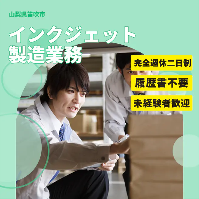 給与詳細 月収例 201,666円 日給例 10,083円 勤務地 山梨県笛吹市 仕事内容 【業務内容】