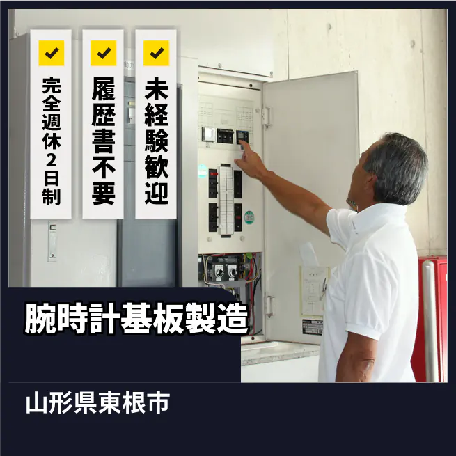 給与詳細 月収例 230,000円 日給例 11,500円 勤務地 山形県東根市 仕事内容 【業務内容】腕時計用基板の製造オペレーター