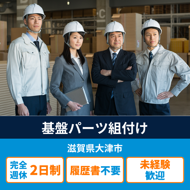 給与詳細 月収例 288,600円 日給例 11,840円 勤務地 滋賀県大津市 仕事内容 【業務内容】エアコン用基盤の組立作業を担当します。