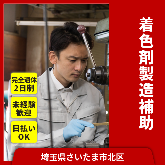 給与詳細 月収例 248,000円 日給例 11,200円 勤務地 埼玉県さいたま市北区 仕事内容 プラスチック着色剤の製造及び付帯業務
