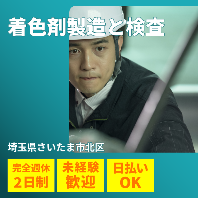 給与詳細 月収例 248,000円 日給例 11,000円 勤務地 埼玉県さいたま市北区 仕事内容 プラスチック着色剤の製造及び付帯業務