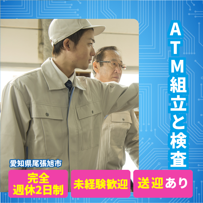 給与詳細 月収例 232,000円 日給例 11,600円 勤務地 愛知県尾張旭市 仕事内容 銀行ATM機器装置の組立・検査、ヘルスケア製品の製造業務。