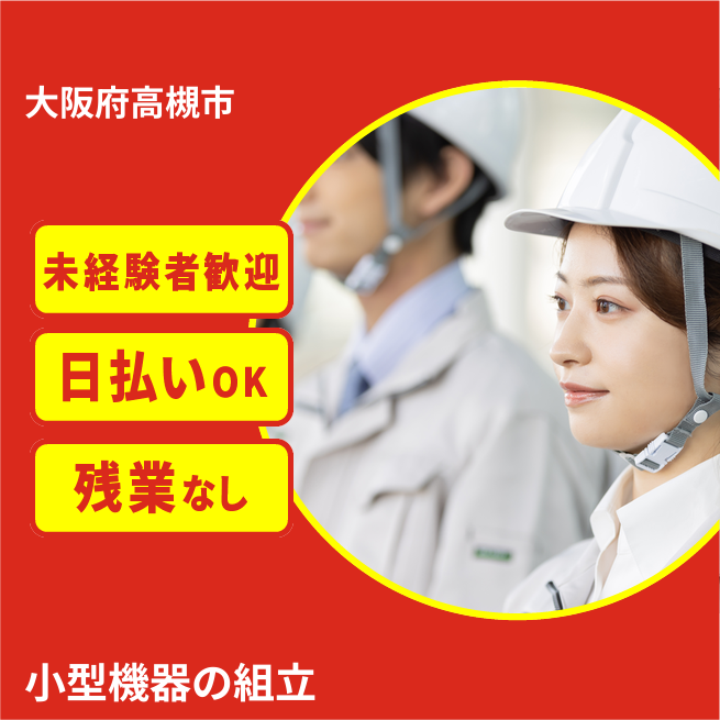 給与詳細 月収例 170,000円 時給例 1,200円 勤務地 大阪府高槻市 仕事内容 【小型機器の組立】