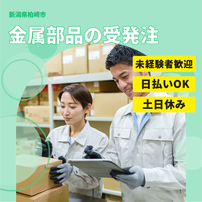 給与詳細 月収例 200,000円 時給例 1,200円 勤務地 新潟県柏崎市 仕事内容 【受発注・データ入力】