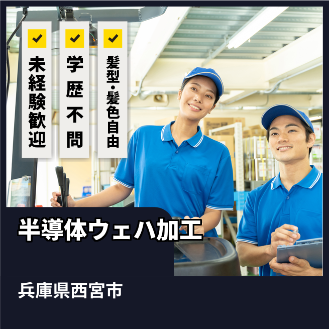クリーンルームでの作業なので、空調完備、重量物無し・作業環境もいい職場です。
