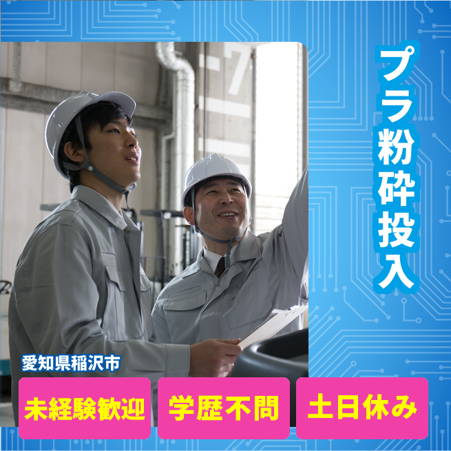 給与詳細 月収例 236,704円 日給例 10,400円 勤務地 愛知県稲沢市 仕事内容 【業務内容】廃プラスチックを粉砕機で細かく砕く作業です。
