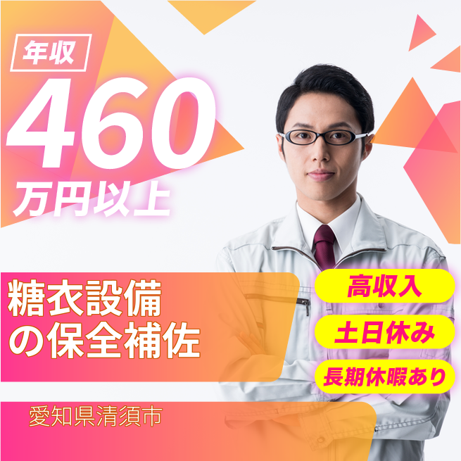スキルアップのチャンス!【糖衣設備の保全補佐】