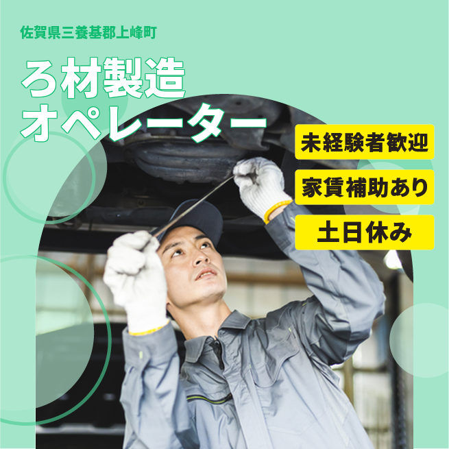 給与詳細 月収例 195,000円 時給例 1,218円 勤務地 佐賀県三養基郡上峰町 仕事内容 ウィルオブ・ワークの正社員としてろ材製造工場で勤務していただきます。