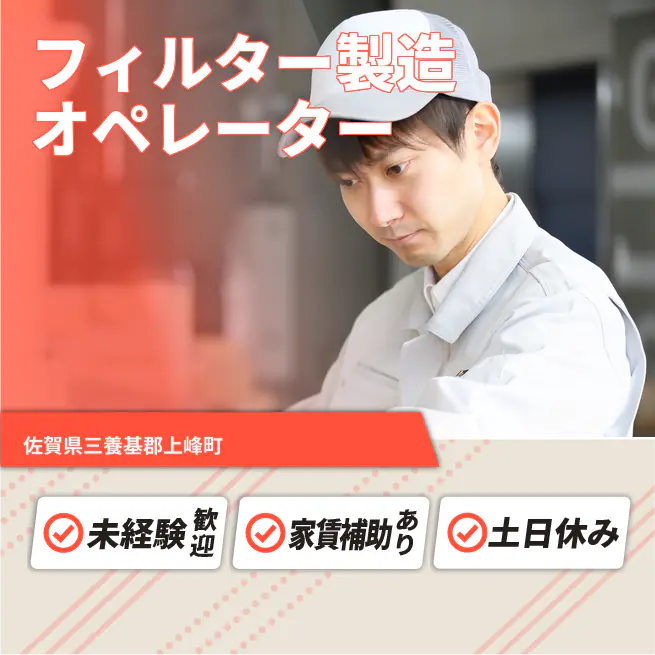 26.1~27.7万 交通費 支給あり 応募の流れ 本ページ内<応募する>ボタンより、必要項目をご入力の上、ご応募ください。 勤務地 【勤務地】佐賀県三養基郡上峰町- 勤務時間 【勤務地】日勤