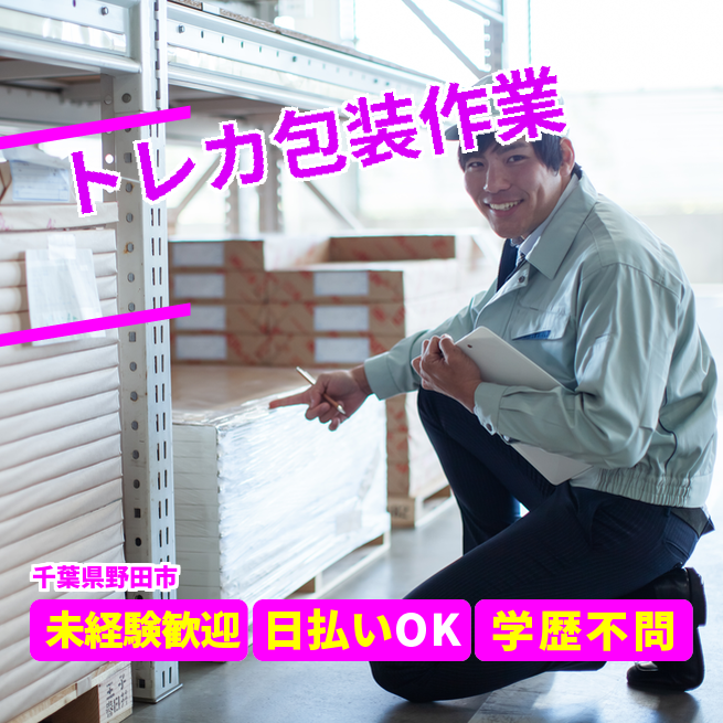 給与詳細 月収例 221,000円 日給例 10,400円 勤務地 千葉県野田市 仕事内容 【トレカの包装・梱包作業】