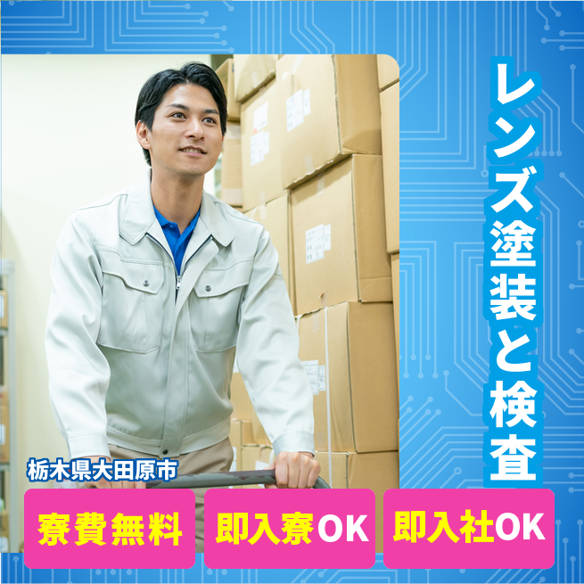 光学レンズの製造における塗料塗りや接合作業を担当する業務です。