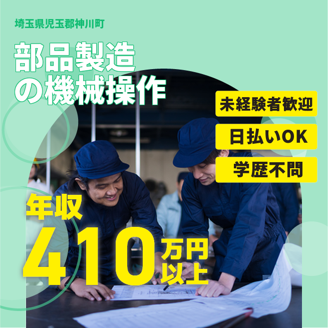 給与詳細 年収例 4,194,000円 月収例 349,500円 勤務地 埼玉県児玉郡神川町 仕事内容 【業務内容】