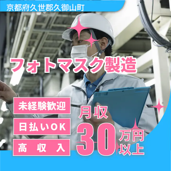 給与詳細 月収例 311,312円 日給例 12,000円 勤務地 京都府久世郡久御山町 仕事内容 【業務内容】