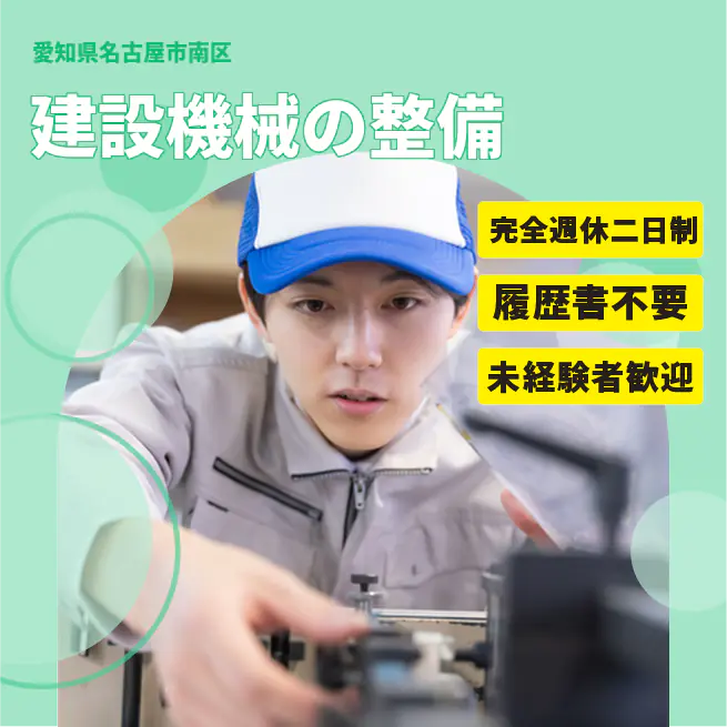 給与詳細 月収例 282,750円 日給例 11,600円 勤務地 愛知県名古屋市南区 仕事内容 建設機械の整備業務として オイル交換、エレメント交換、車内清掃、洗車作業など