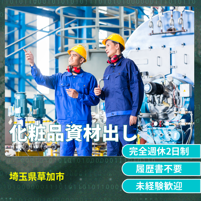給与詳細 月収例 273,000円 日給例 11,200円 勤務地 埼玉県草加市 仕事内容 クリーンルーム内での製造ラインへの資材出し作業