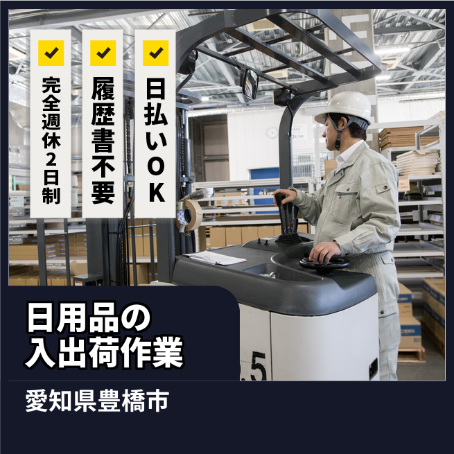 給与詳細 月収例 273,000円 日給例 11,200円 勤務地 愛知県豊橋市 仕事内容 化粧品・日用品の物流部門の業務