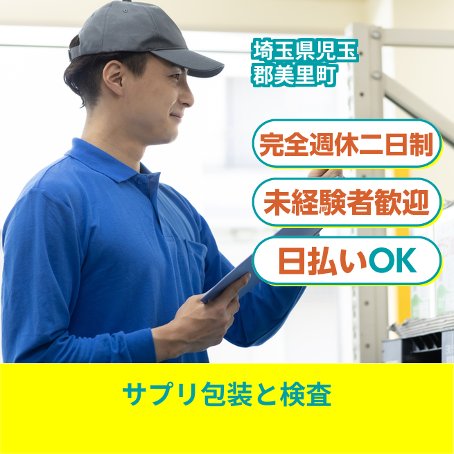 ※実際と異なるケースもございます。 交通費 支給あり 応募の流れ 本ページ内<応募する>ボタンより、必要項目をご入力の上、ご応募ください。 勤務地 【勤務地】埼玉県児玉郡美里町広木 勤務時間 【勤務地】①08:30~17:10 休憩60分