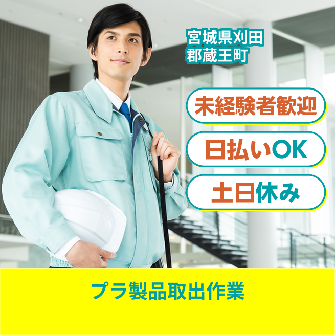 ◆日払い・仮払いOK(アプリでカンタン申請!) 交通費 支給あり 応募の流れ 本ページ内<応募する>ボタンより、必要項目をご入力の上、ご応募ください。 勤務地 【勤務地】宮城県刈田郡蔵王町宮 勤務時間 【勤務地】8:00~17:30(休憩60分)
