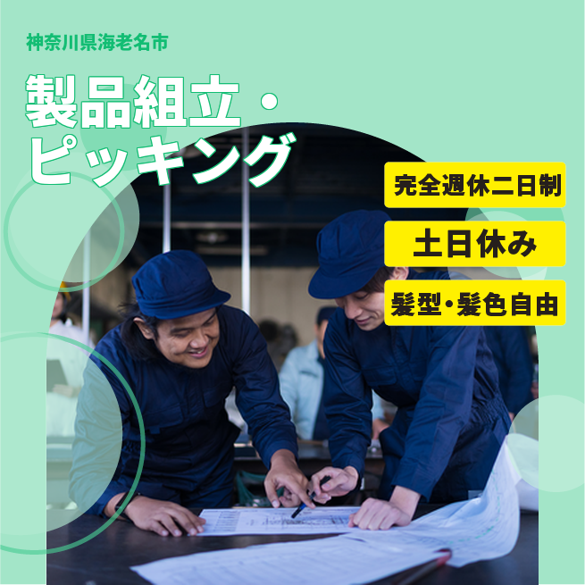 時給例:1400円 応募の流れ 本ページ内<応募する>ボタンより、必要項目をご入力の上、ご応募ください。 勤務地 【勤務地】神奈川県海老名市- 勤務時間 【勤務地】8:30~17:15 福利厚生 残業手当 公開日 2025年01月01日 部屋タイプ 単身者向けの1Rやカップル・家族向け2Kのルーム、ペットOKなど幅広いニーズに合わせてご用意しております! 家具・備品 テレビ・冷蔵庫・エアコンなどの家電を完備!すぐに新生活が始められます!※寮による その他 カップル・家族寮:寮なし