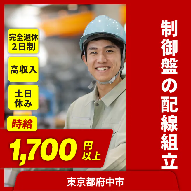 給与詳細 月収例 272,000円 時給例 1,700円 勤務地 東京都府中市 仕事内容 制御盤の配線組立・検査(設計図確認作業等あり)