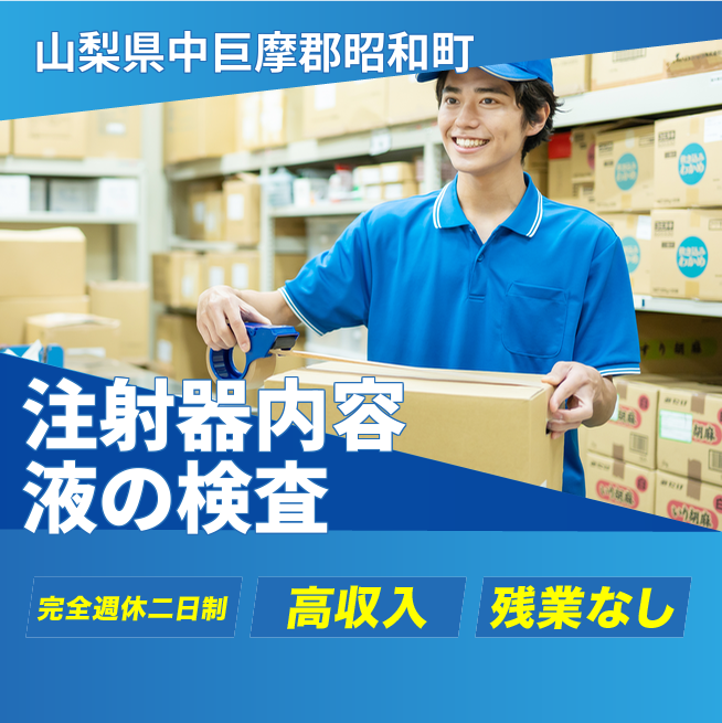 給与詳細 月収例 225,000円 日給例 11,250円 勤務地 山梨県中巨摩郡昭和町 仕事内容 【業務内容】