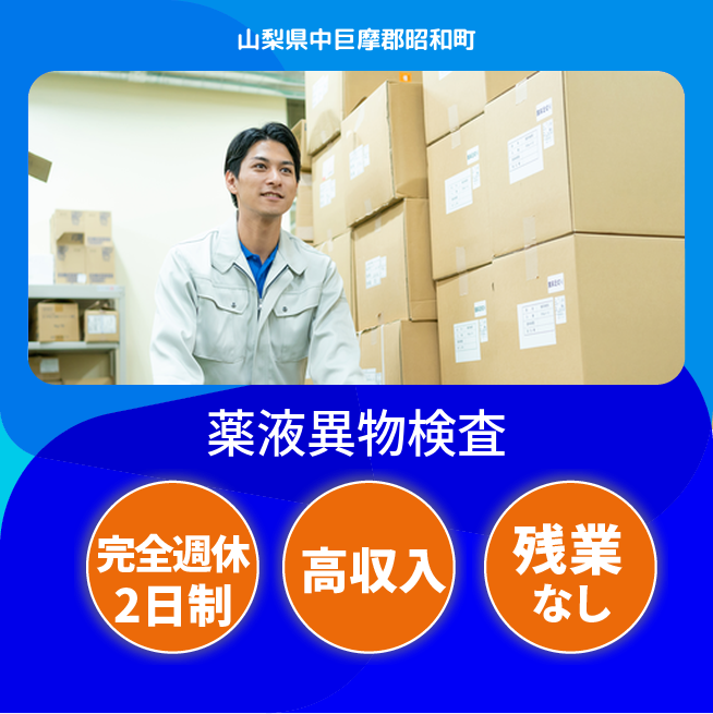 給与詳細 月収例 225,000円 日給例 11,250円 勤務地 山梨県中巨摩郡昭和町 仕事内容 【業務内容】