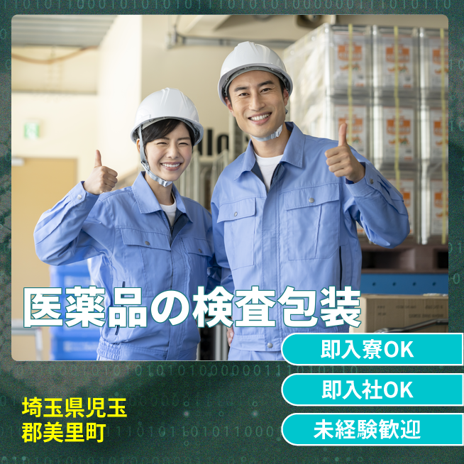 給与詳細 月収例 260,385円 日給例 11,200円 勤務地 埼玉県児玉郡美里町 仕事内容 【医薬品の目視検査・包装スタッフ】