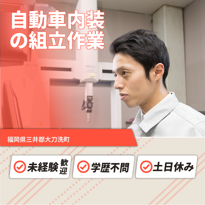 就業場所:無/就業範囲:無 自動車の内装(ドアの内側など)の部品を組み立てる作業。