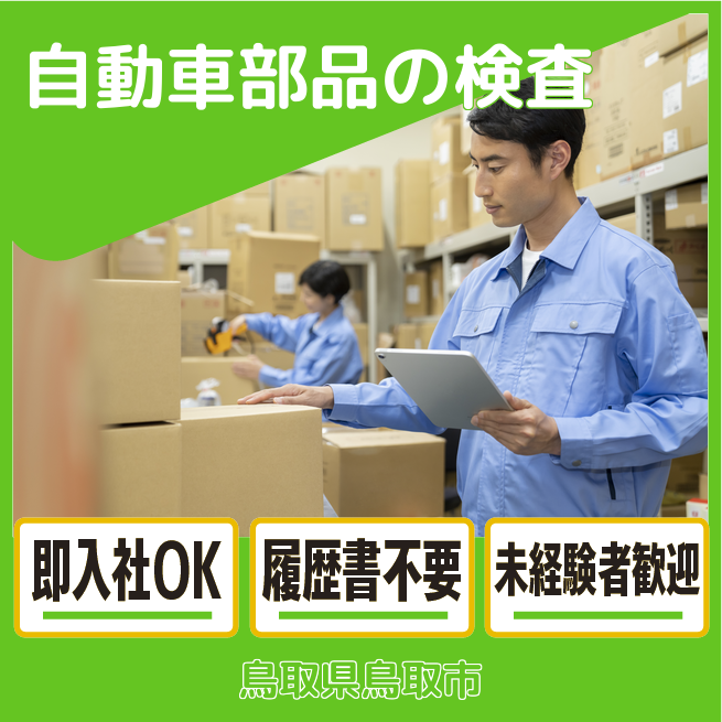給与詳細 月収例 210,000円 日給例 10,000円 勤務地 鳥取県鳥取市 仕事内容 自動車部品の検査スタッフ/交代
