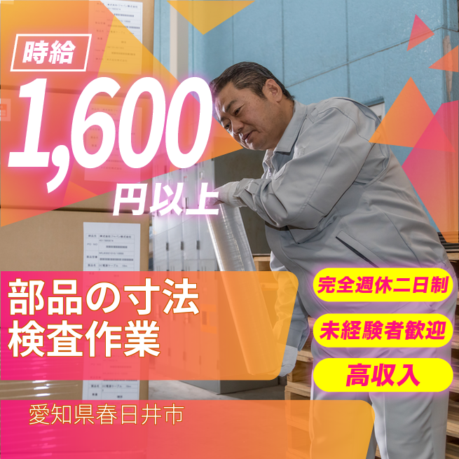 給与詳細 月収例 256,000円 時給例 1,600円 勤務地 愛知県春日井市 仕事内容 図面を見ながら部品のサイズを正確に測る検査作業