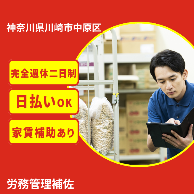 総支給例:24.4万円(基本給+交通費) 交通費 支給あり 応募の流れ 本ページ内<応募する>ボタンより、必要項目をご入力の上、ご応募ください。 勤務地 【勤務地】神奈川県川崎市中原区大倉町 勤務時間 【勤務地】8:00~17:00