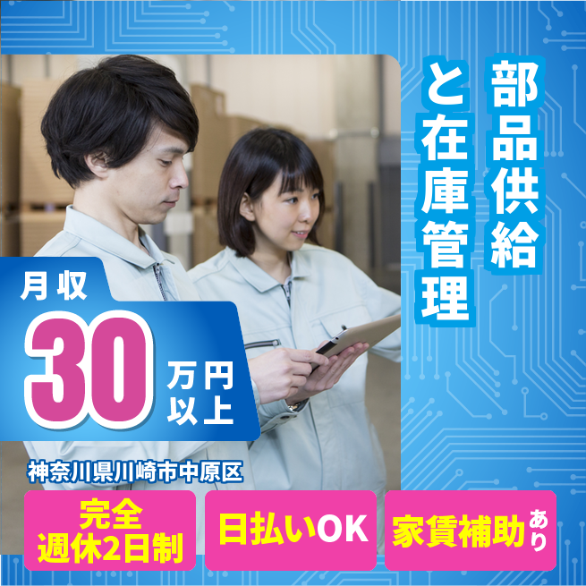 ・担当生産工程の生産に合わせた部品供給、それに伴う入荷・在庫管理