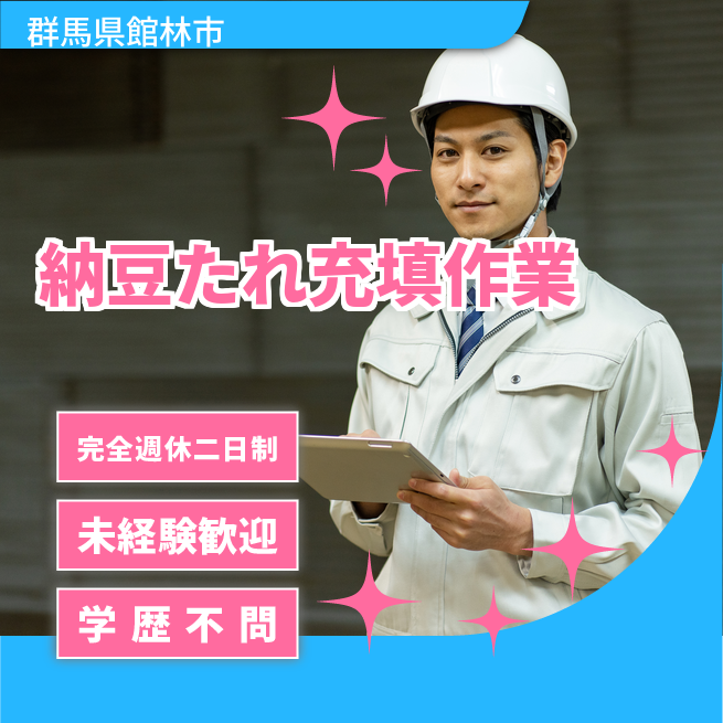 給与詳細 月収例 188,439円 日給例 9,040円 勤務地 群馬県館林市 仕事内容 【職種】