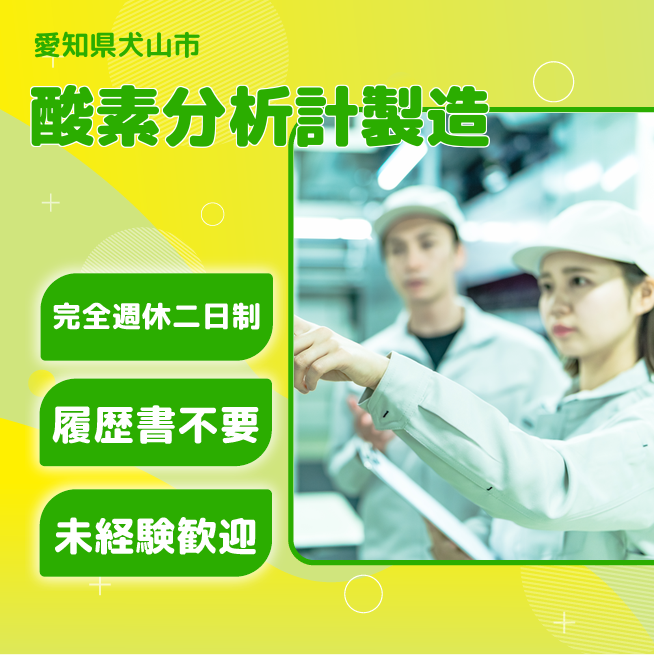 給与詳細 月収例 263,250円 日給例 10,800円 勤務地 愛知県犬山市 仕事内容 酸素分析計の製造。回路印刷・組立・成形・焼成作業(O2センサ製造)