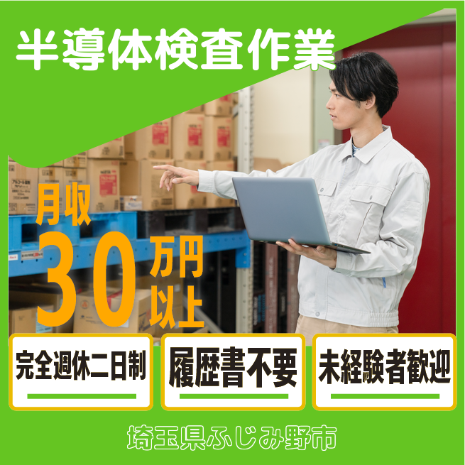 給与詳細 月収例 321,750円 時給例 1,650円 勤務地 埼玉県ふじみ野市 仕事内容 【業務内容】検査機を使った検査作業。
