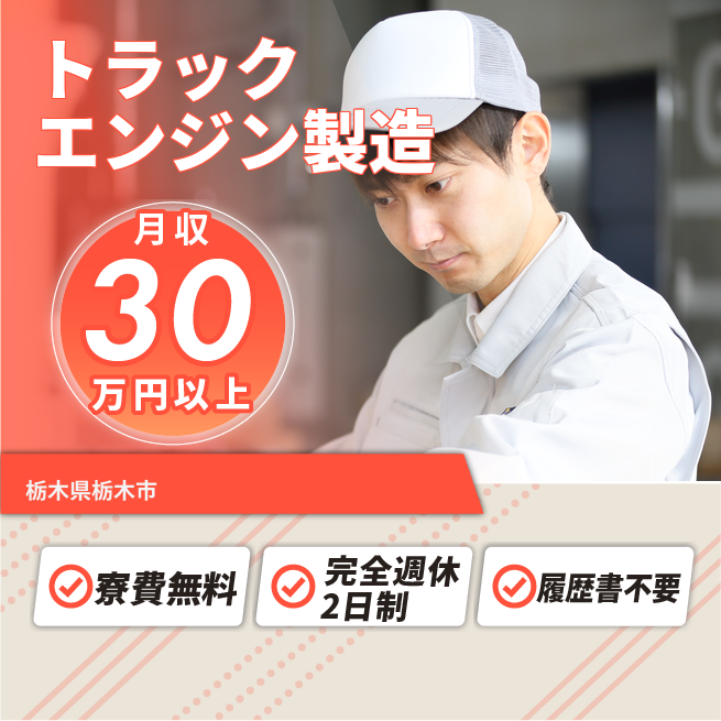 給与詳細 月収例 320,000円 時給例 1,650円 勤務地 栃木県栃木市 仕事内容 【作業内容】トラック用エンジンの製造にまつわるお仕事になります。部品のピッキング、供給作業、組立、検査、加工等様々な作業への配属を予定しております。