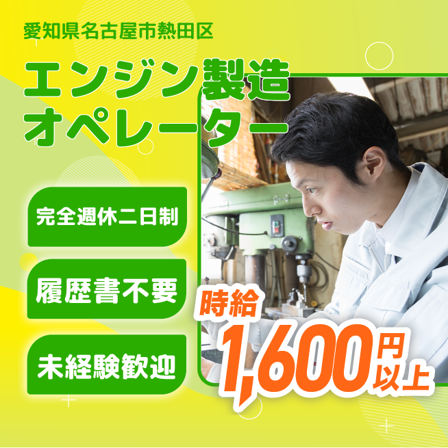 給与例は概算での計算となります。※実際と異なるケースもございます。 交通費 支給あり 応募の流れ 本ページ内<応募する>ボタンより、必要項目をご入力の上、ご応募ください。 勤務地 【勤務地】愛知県名古屋市熱田区- 勤務時間 【勤務地】【勤務時間】
