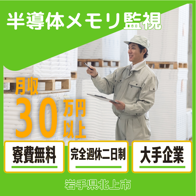 給与詳細 月収例 330,000円 時給例 1,800円 勤務地 岩手県北上市 仕事内容 製造装置から出てくる生産データをPC上で監視し、データ上から改善できる箇所や異常箇所の特定を行い、今よりも良い品質の製品の実現に向けて管理するお仕事