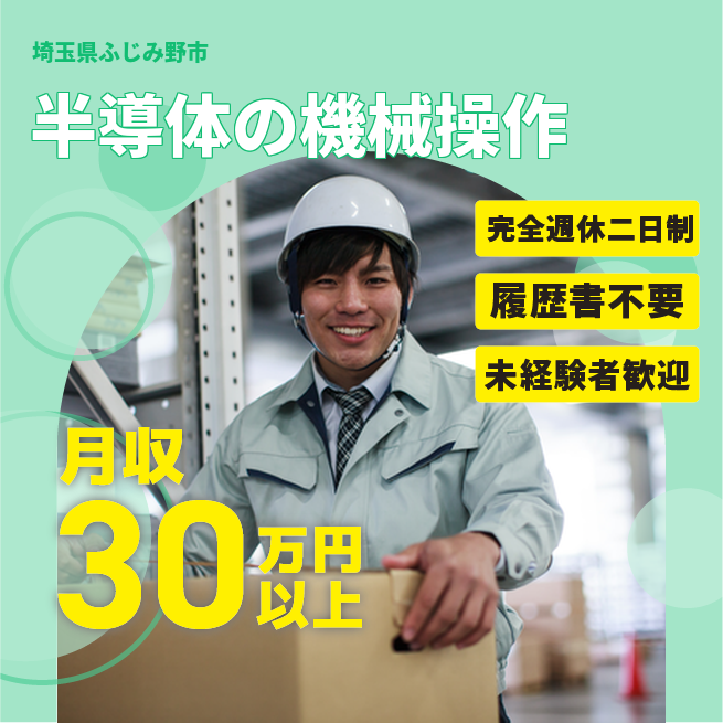 給与詳細 月収例 321,750円 時給例 1,650円 勤務地 埼玉県ふじみ野市 仕事内容 【業務内容】半導体製品の焼き付けの機械オペレーター、重量物5キロほど、覚えること多いです