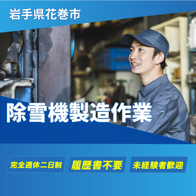 給与詳細 月収例 246,400円 日給例 12,320円 勤務地 岩手県花巻市 仕事内容 除雪機、草刈り機の製造のための諸業務。