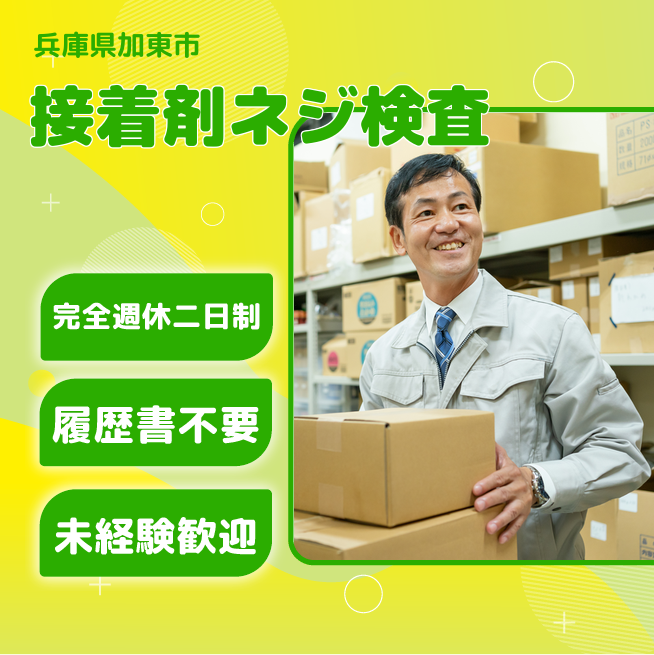 給与詳細 月収例 200,000円 日給例 10,000円 勤務地 兵庫県加東市 仕事内容 自動車・建機関係向けへの接着剤が塗布されたネジの外観検査業務・完成品の梱包(軽量)、パレット入れ。