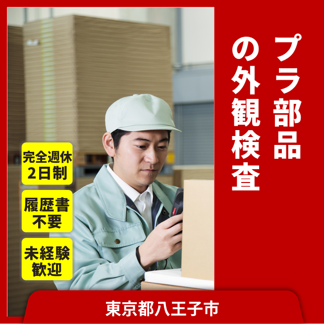 給与詳細 月収例 240,000円 日給例 12,000円 勤務地 東京都八王子市 仕事内容 【業務内容】手のひらサイズのプラスチック製品の外観検査と計量・袋詰めをするお仕事です。冷暖房完備・クリーンスーツを着用して作業をします。【取扱製品】電気製品などに使用されるプラスチック部品